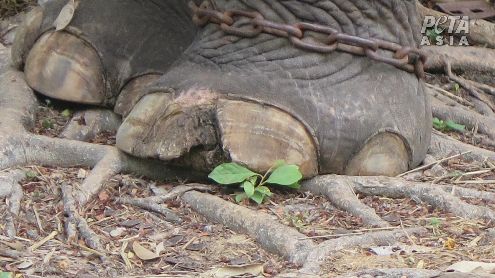 Los testigos hallaron que los elefantes vivían sobre pisos de concreto, lo que puede ocasionarles problemas de pie y de articulaciones, y sus piernas estaban amarradas con cadenas cortas de metal.