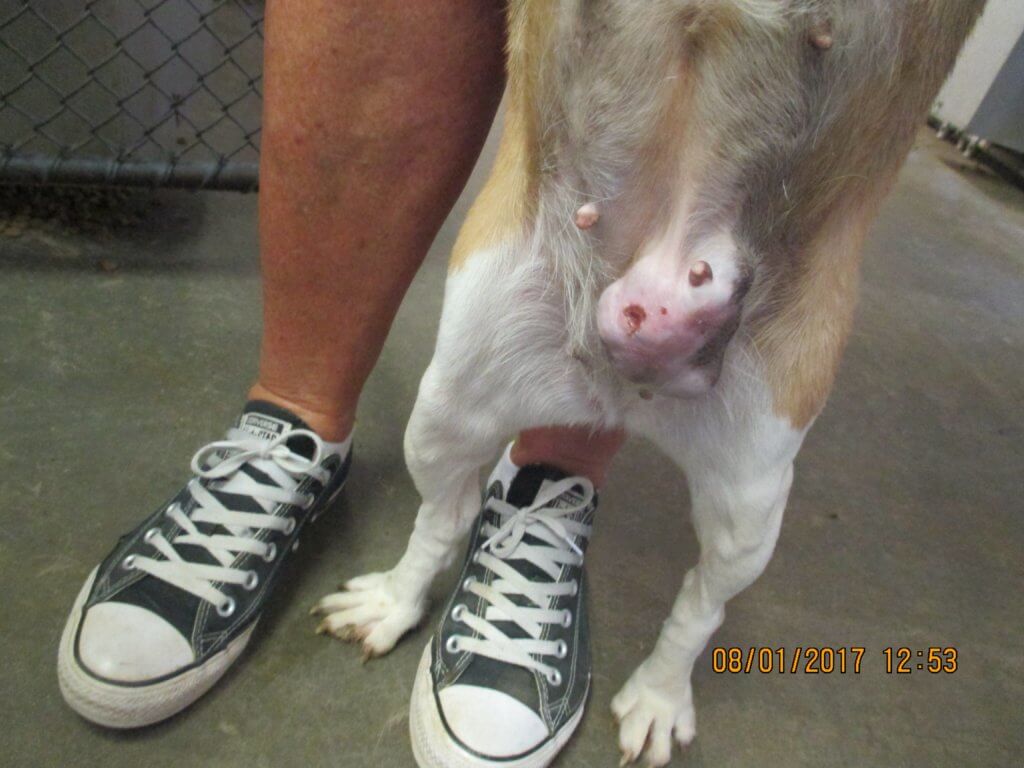Los inspectores encontraron a una perra con una masa ulcerada en su glándula mamaria, otro que tenía poco pelaje y estaba cubierto de costras, y un joven beagle macho con enrojecimiento e inflamación en sus orejas, abdomen, ingle, piernas, dedos, axilas y labios.