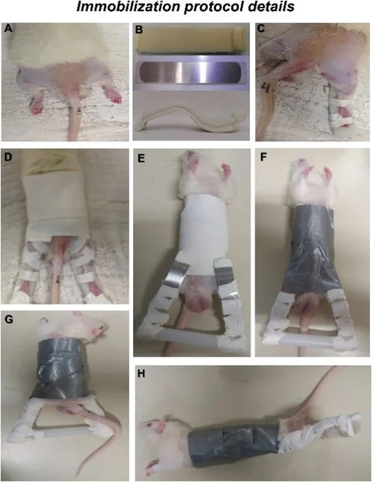 En esta prueba financiada por Ajinomoto, los experimentadores de la Universidade Federal do Rio Grande do Sul colocaron tablillas en las piernas traseras de las ratas y dejaron que los animales sufrieran así durante dos semanas para forzar el deterioro de sus músculos. Los resultados de este experimento no son transferibles a los humanos debido a las profundas diferencias biológicas y fisiológicas entre especies.