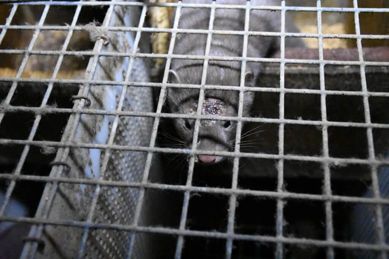 Los visones son animales semiacuáticos que construyen sus hogares en madrigueras acogedoras que recubren con césped y hojas. Pero en las granjas industriales de pieles, los visones son apiñados en pequeñas jaulas de alambre que les cortan los pies, sin acceso al césped sobre el cual acostarse ni agua para nadar. Muchos animales en las granjas peleteras se vuelven locos lentamente e incluso se automutilan por el estrés del confinamiento intensivo.