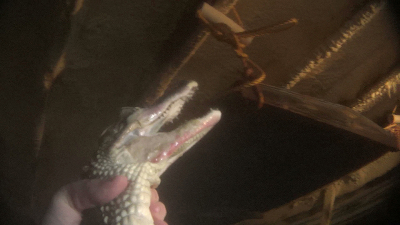 El investigador vio caimanes que continuaban moviendo sus piernas y colas en el estante de sangrado y en los contenedores de hielo ensangrentados varios minutos después de su intento de asesinato.