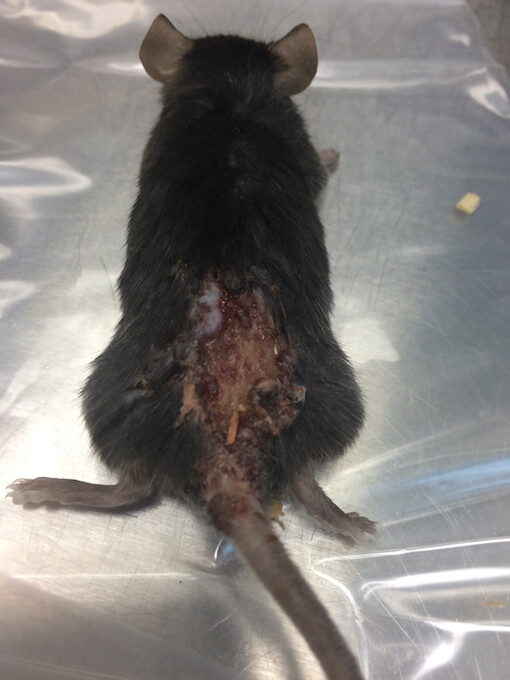 Si los ratones y las ratas creían en el infierno, éste se vería como los laboratorios de Pitt. Les negaron cuidados adecuados, y muchos padecieron una dermatitis ulcerativa insoportable pero prevenible, la cual les provocó llagas dolorosas e irritantes. En un experimento, Rajesh Aneja punzó los intestinos de ratones para que las bacterias dañinas se filtraran en sus estómagos y les causaran un shock séptico. ¿El resultado? Según un veterinario, los ratones “caían muertos”. El comité que supervisa la experimentación en animales en Pitt aprobó los experimentos de Aneja, a pesar de que un estudio reconocido determinó que los resultados de los experimentos de sepsis en ratones no pueden aplicarse a los seres humanos.