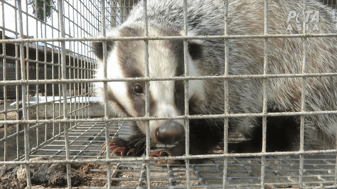 Una investigación de PETA Asia (primera en su tipo) de la industria de pinceles y brochas de pelo de tejón en China revela que los tejones "protegidos" son capturados ilegalmente en la naturaleza usando trampas y otros métodos crueles, mientras que otros son criados y confinados en pequeñas jaulas en granjas antes de ser violentamente matados para pinceles y brochas de pintura, maquillaje y afeitar.